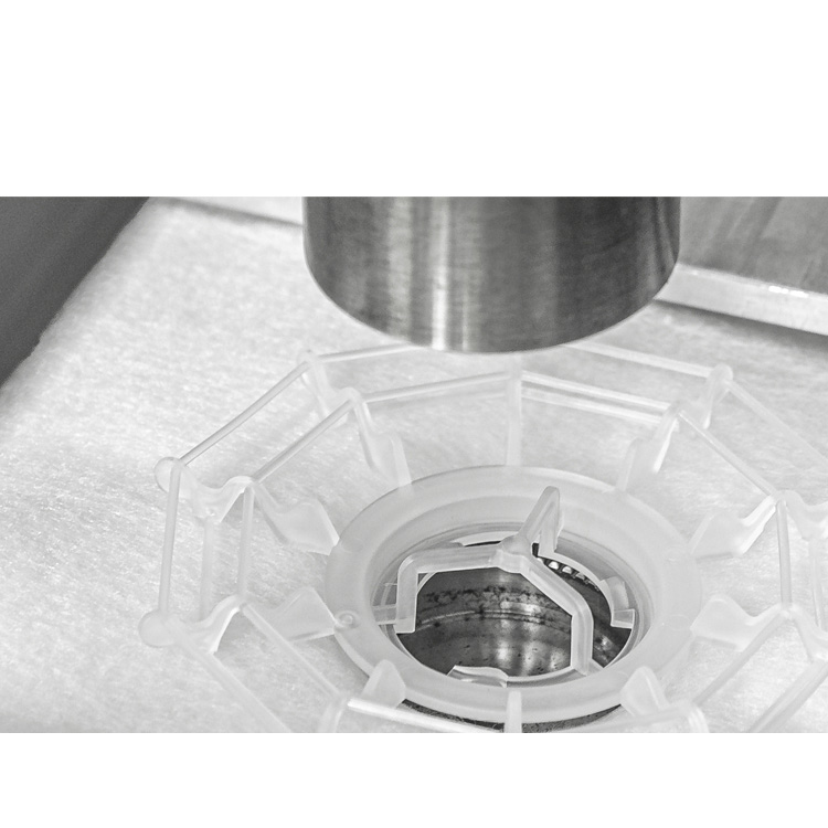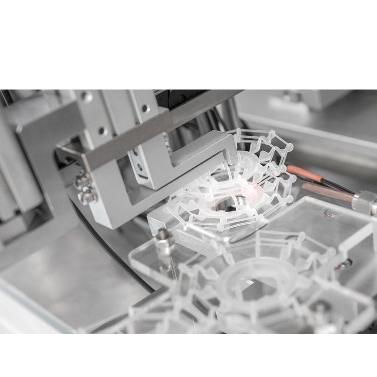 This machine is the production of manufacturing round respiratory cotton filter equipment, automatic cutting, punching, welding breathing valve onto the plastic frame, ultrasonic welding, cutting and other functions; The filter cotton pad is pre-cut to achieve single conveying, and the filter cotton does not affect the material utilization rate of the conveying structure of the machine but 20% increased compared with the conventional way.