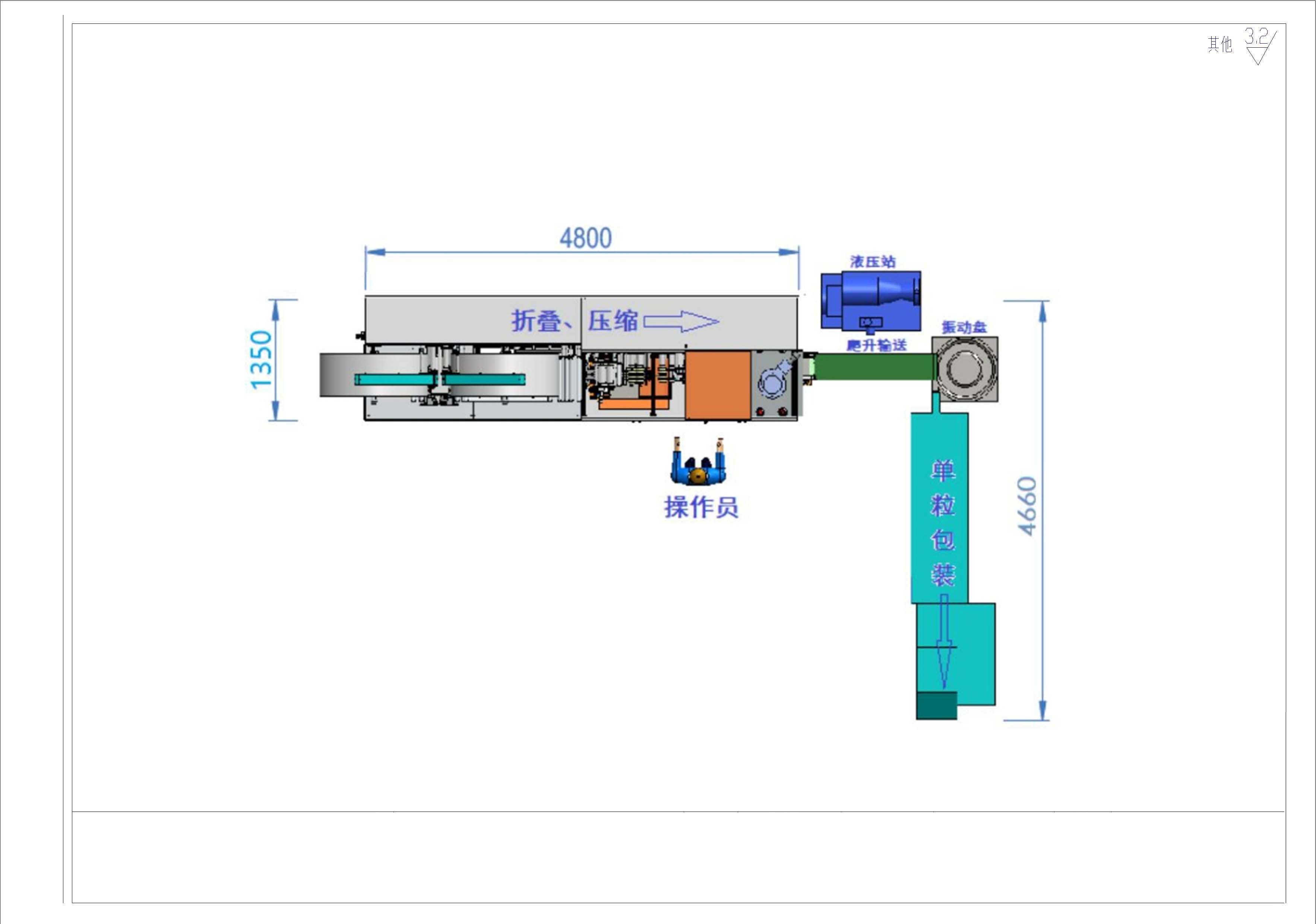 This machine is an automated production system for disposable compressed towels/face cloths. It utilizes a hydraulic system for pressure control, allowing for real-time adjustment of pressure and compression. The mechanical components feature a modular design. A servo-motor control system and a high-precision planetary gear reducer ensure efficient and stable operation. The dual-roll design allows for uninterrupted material replenishment, increasing production efficiency, and it can be connected to a packaging machine for automated, real-time packaging.