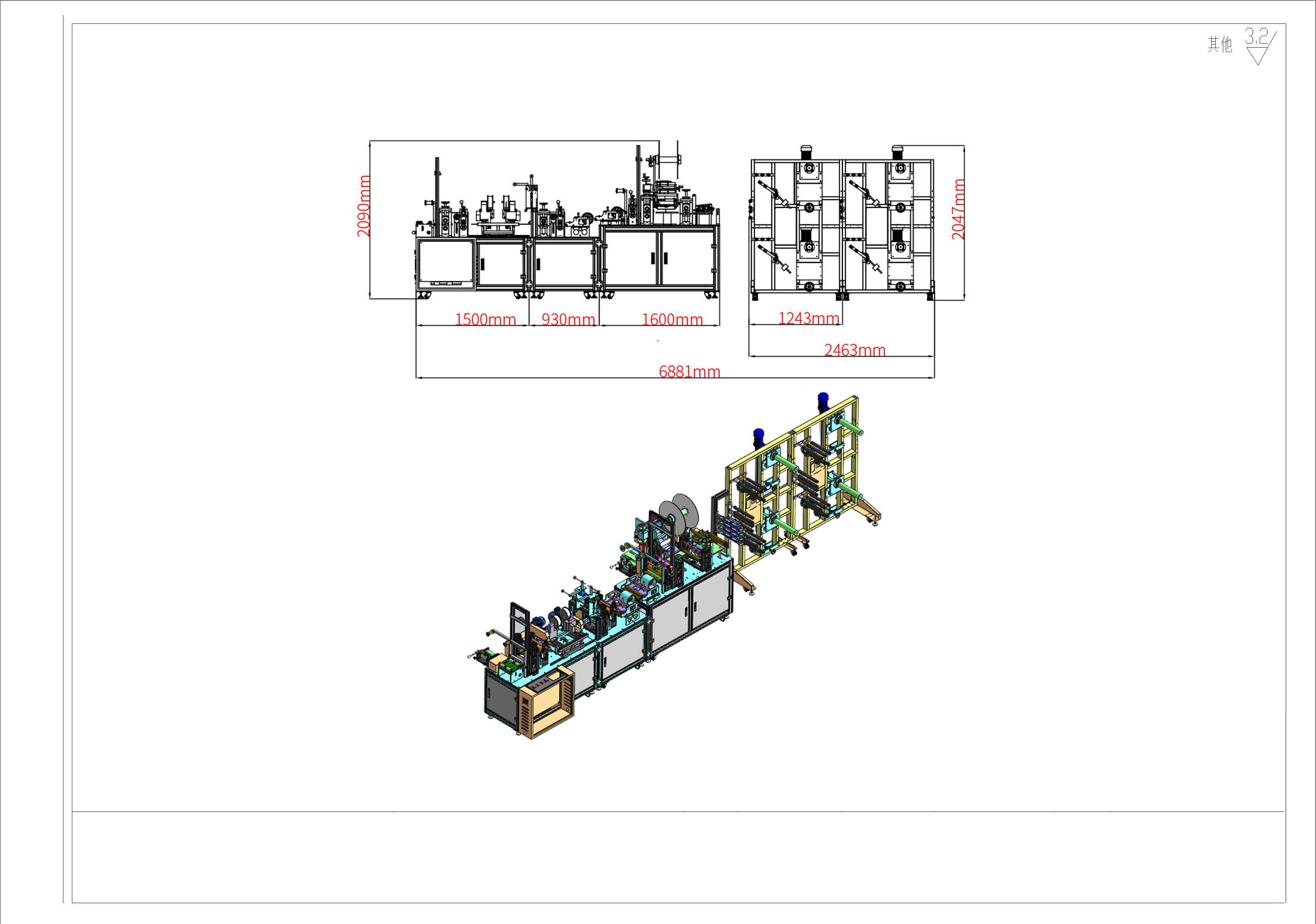 The automatic production line of fish-shaped nailing masks is fully automated from fabric feeding to finished products, printing, upper nose bridge strips, upper sponge strips, punching, welding valves, half folding, forming and welding and finished product cutting, automatic collection of waste materials, and finished product output are completed on a raw line, and the whole machine only needs one employee to operation.