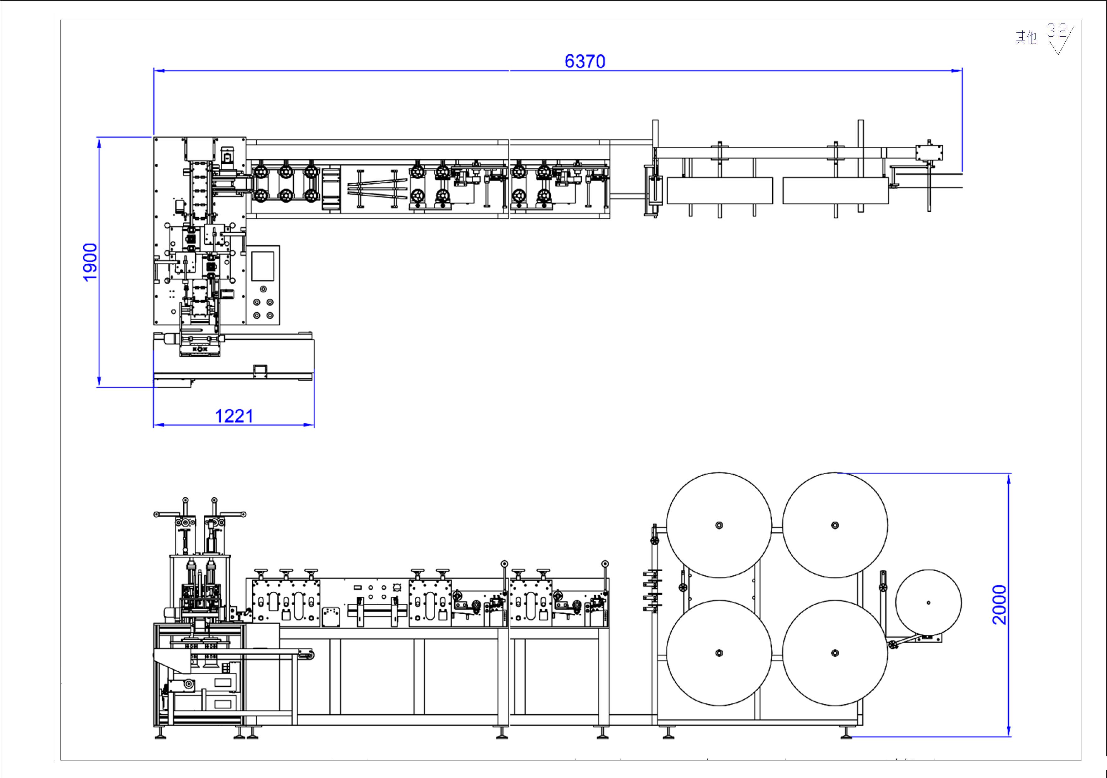 This machine is a fully automated machine for producing flat masks. It has a double nose line design and consists of a main body and an ear loop machine. From the production of the mask body to the welding of the ear loops, everything is completed automatically.