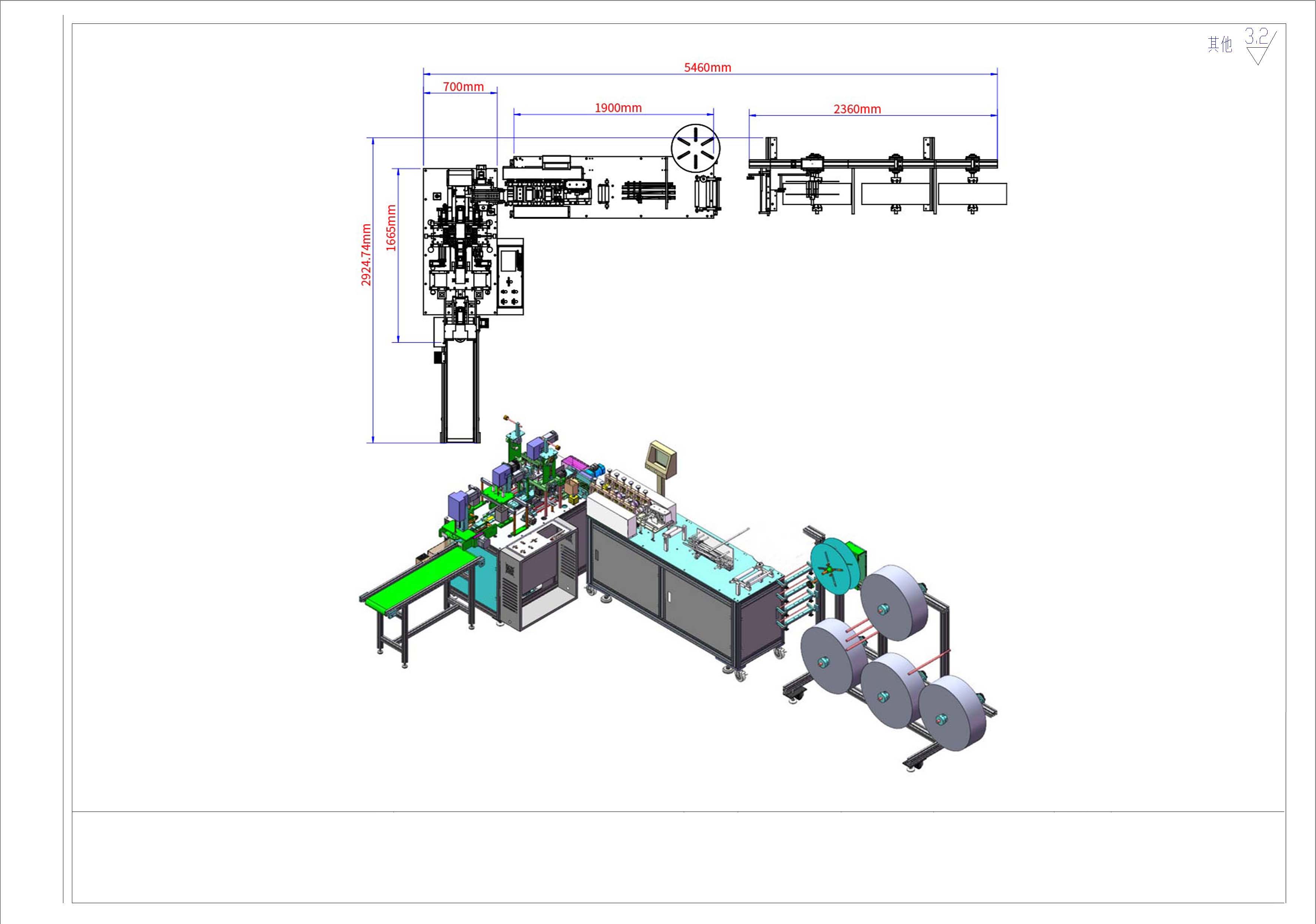 This fully automated machine for producing flat masks consists of a main unit and an ear loop machine. The main unit is equipped with a color-coded sensor that controls the cutter based on the color of the fabric, ensuring accurate positioning of the printed fabric for mask production. From mask production to ear loop and nose wire welding, all the way to finished product, the entire process is automated. It is suitable for producing masks with external ear loops.