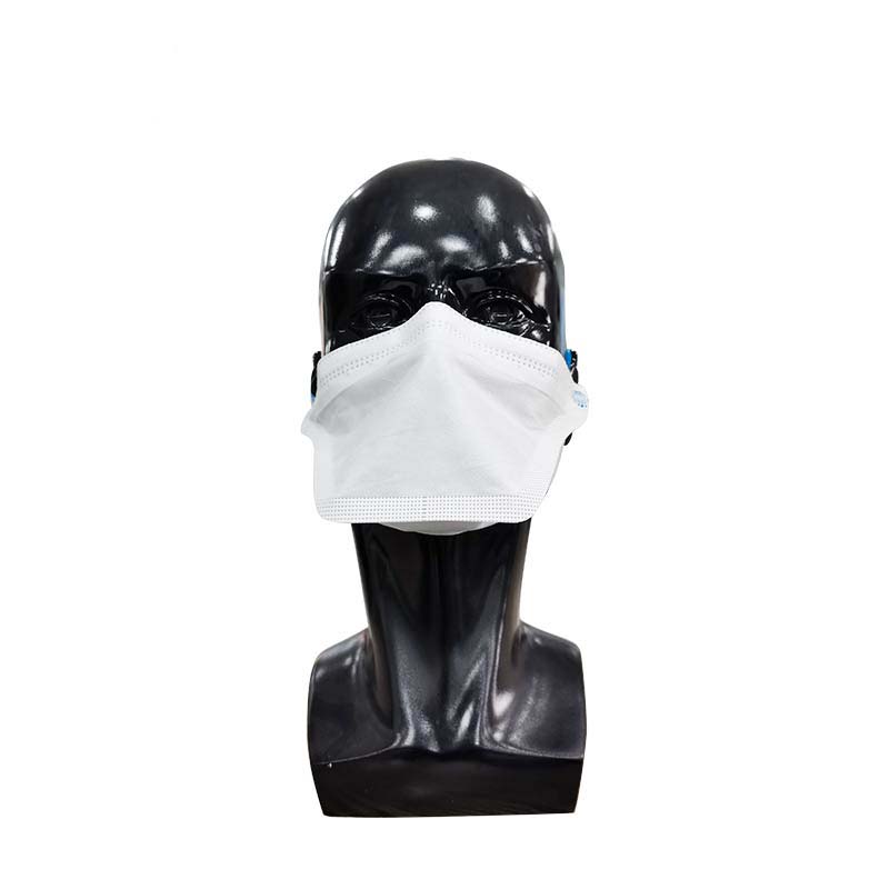 This machine is a fully automated device for producing duckbill-shaped mask bodies. It automatically completes the entire process from feeding to finished product output, including adding the nose bridge strip, mask printing, punching the breathing valve hole, ultrasonic welding and forming, finished product cutting, counting and collection, etc.