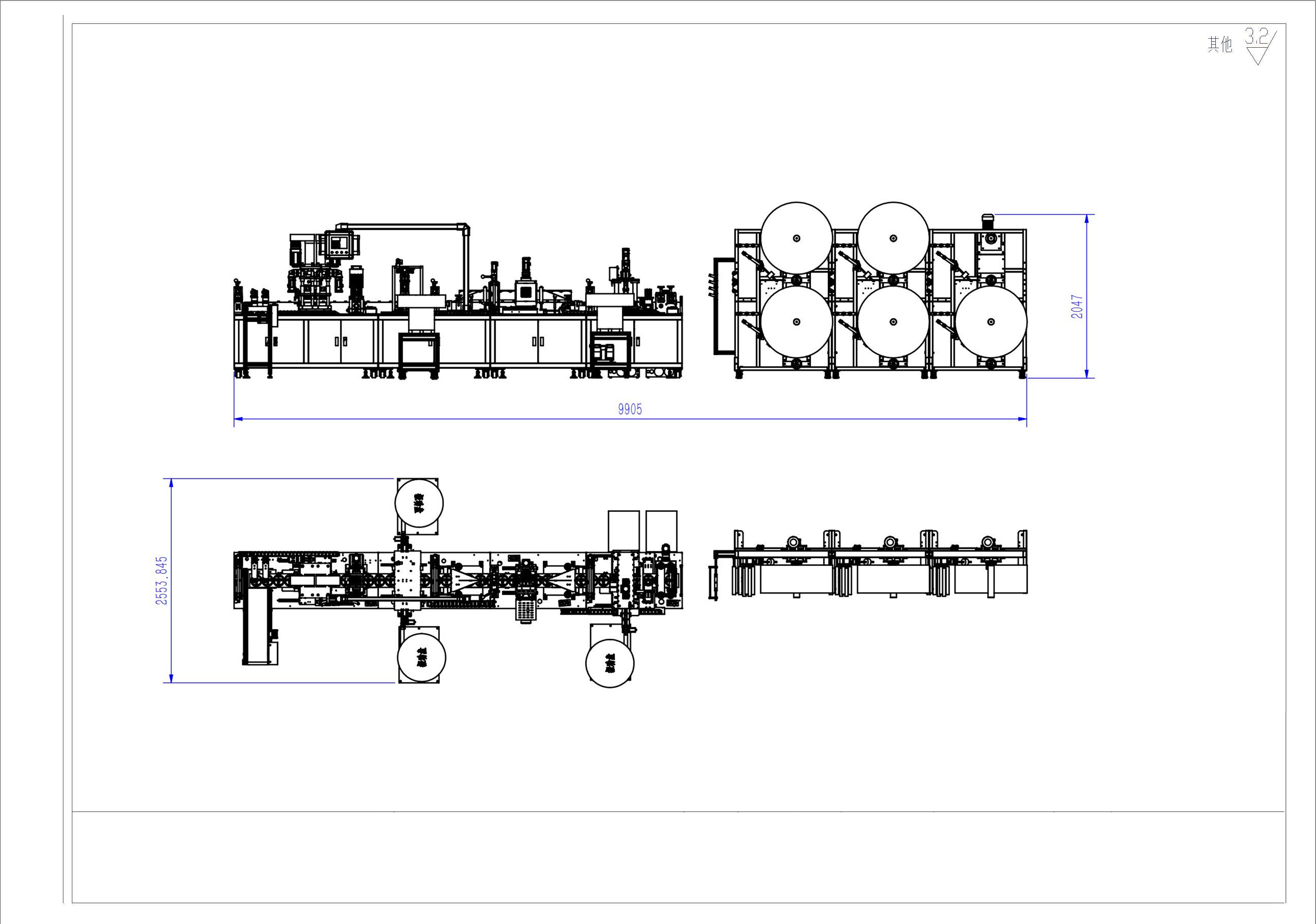 This machine is a fully automatic skeleton mask machine that composites, punches, welds, cuts, collects, and discharges non-woven, meltblown, elastic cloth and other materials. ★ The rear end of this machine adopts single-piece conveying, and the failure of the front and rear filters does not affect each other.