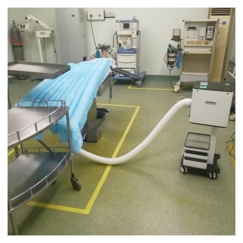 The medical inflatable warming blanket manufacturing machine is fully automatic, from two rolls of raw materials to finished product winding. It adopts ultrasonic sewing technology, multiple sets of ultrasonic quilting technology in the front section, PLC controls the welding position, and adopts XY axis ultrasonic sewing technology. After sewing the product, it enters laser cutting. This machine can realize customized sewing and cutting of various products, realizing multi-purpose use of one machine.