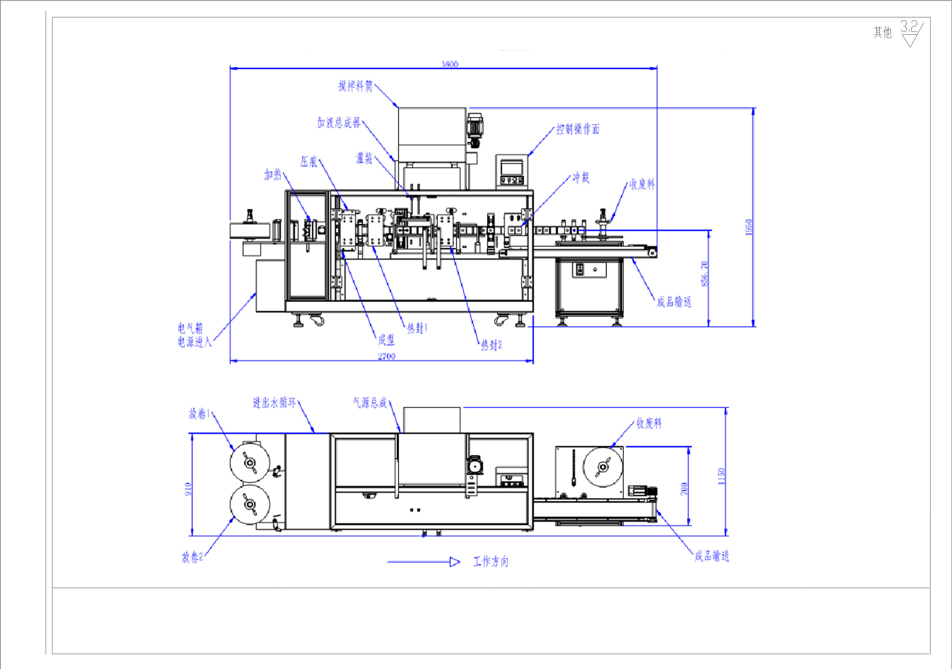 This machines main components include unwinding, heating, forming, creasing, filling, sealing, punching, scrap collection, and finished product output. The machines dispensing head is leak-proof, foam-proof, and spill-proof. Liquid-contact areas are constructed of stainless steel and meet GMP standards. The automated filling system ensures accurate metering with minimal error. This machine utilizes a human-machine interface, PLC control, and stepless frequency conversion for precise metering. It boasts high production speed, high efficiency, minimal footprint, compact structure, quick product and mold changeover, and low costs. It is suitable for high-volume production of a wide variety of products.